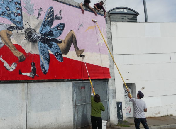 Le MUR de St Etienne est un support de 3m x 8m, occupé chaque mois par l’oeuvre d’un artiste invité. Rue du Frère Maras / St Etienne. « Un collage par mois pour la santé publique »